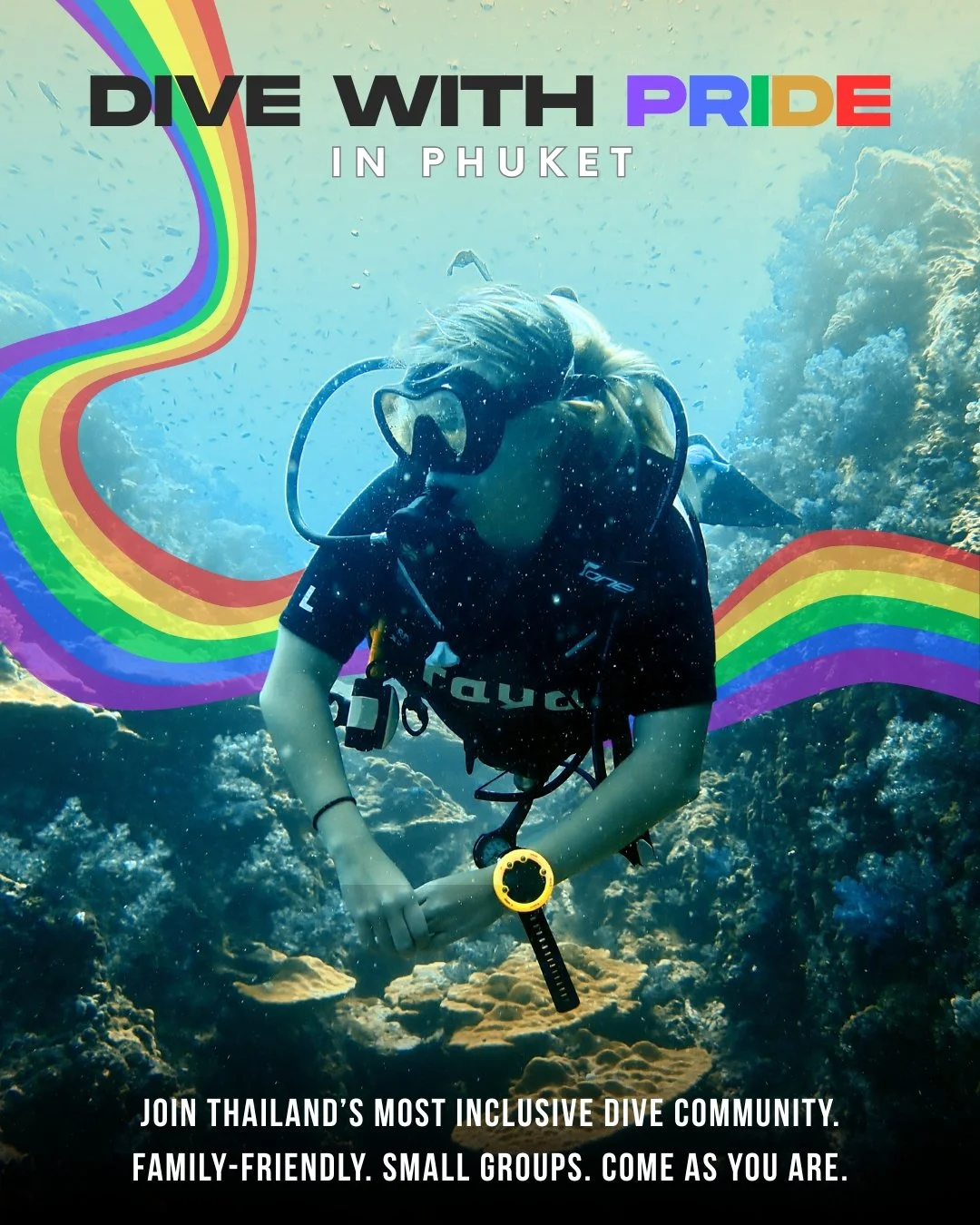 Phuket’s boutique diving adventures designed for the LGBTQ+ community and allies. Safe, inclusive, and unforgettable.
